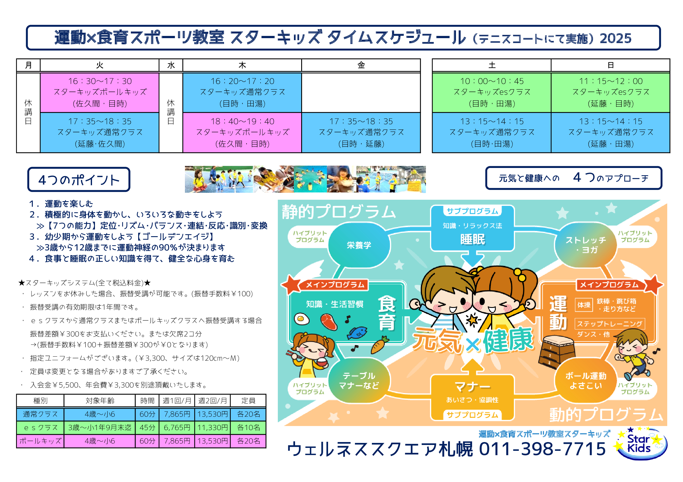 スターキッズは(ウェルネススクエア札幌)はテニスラウンジグループです。